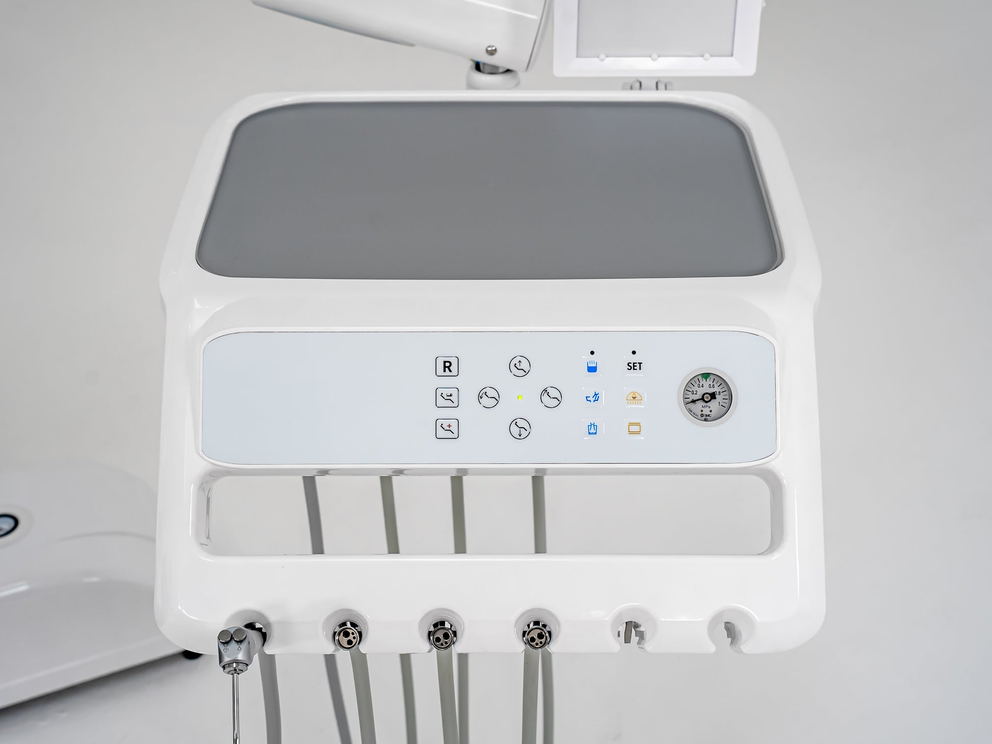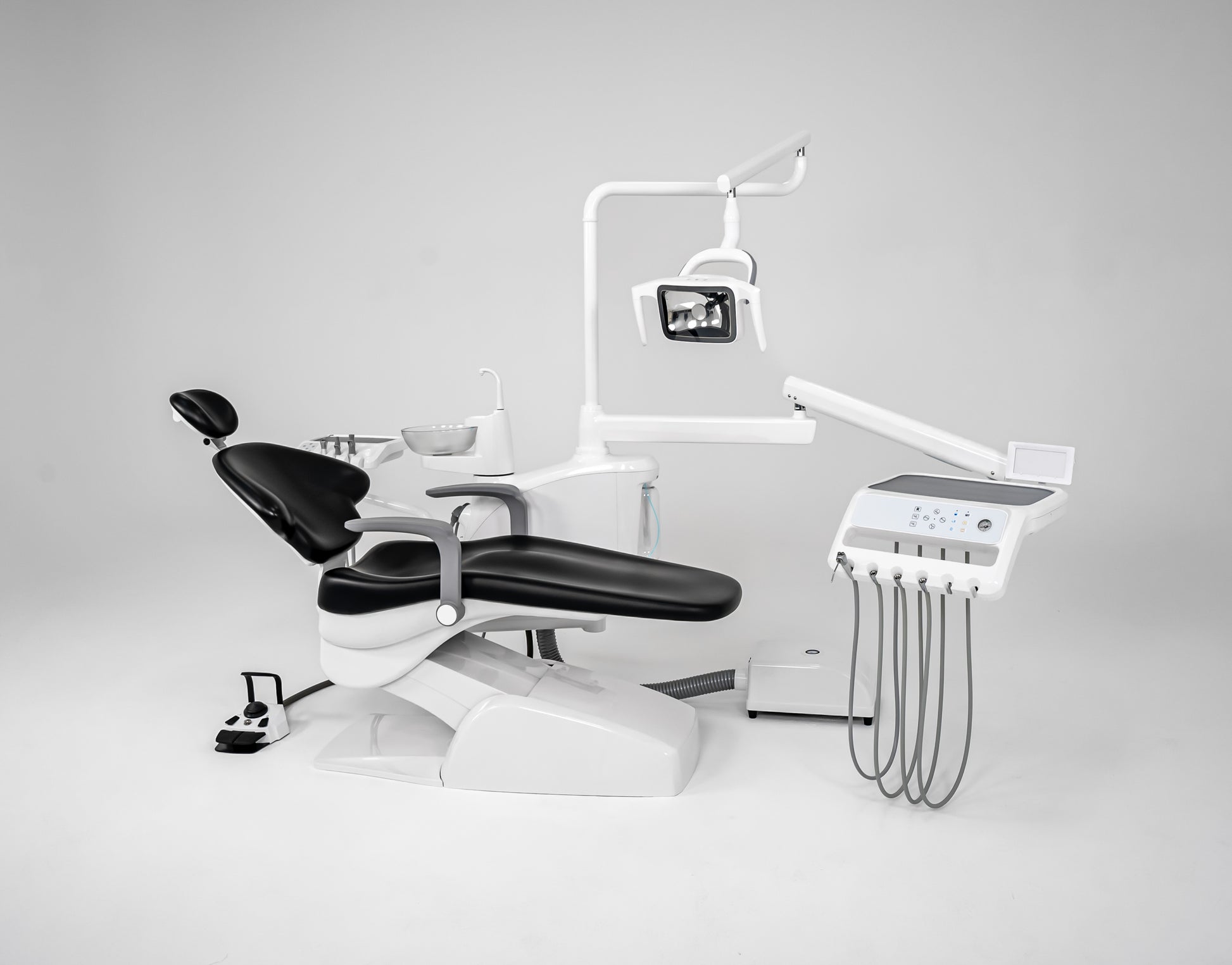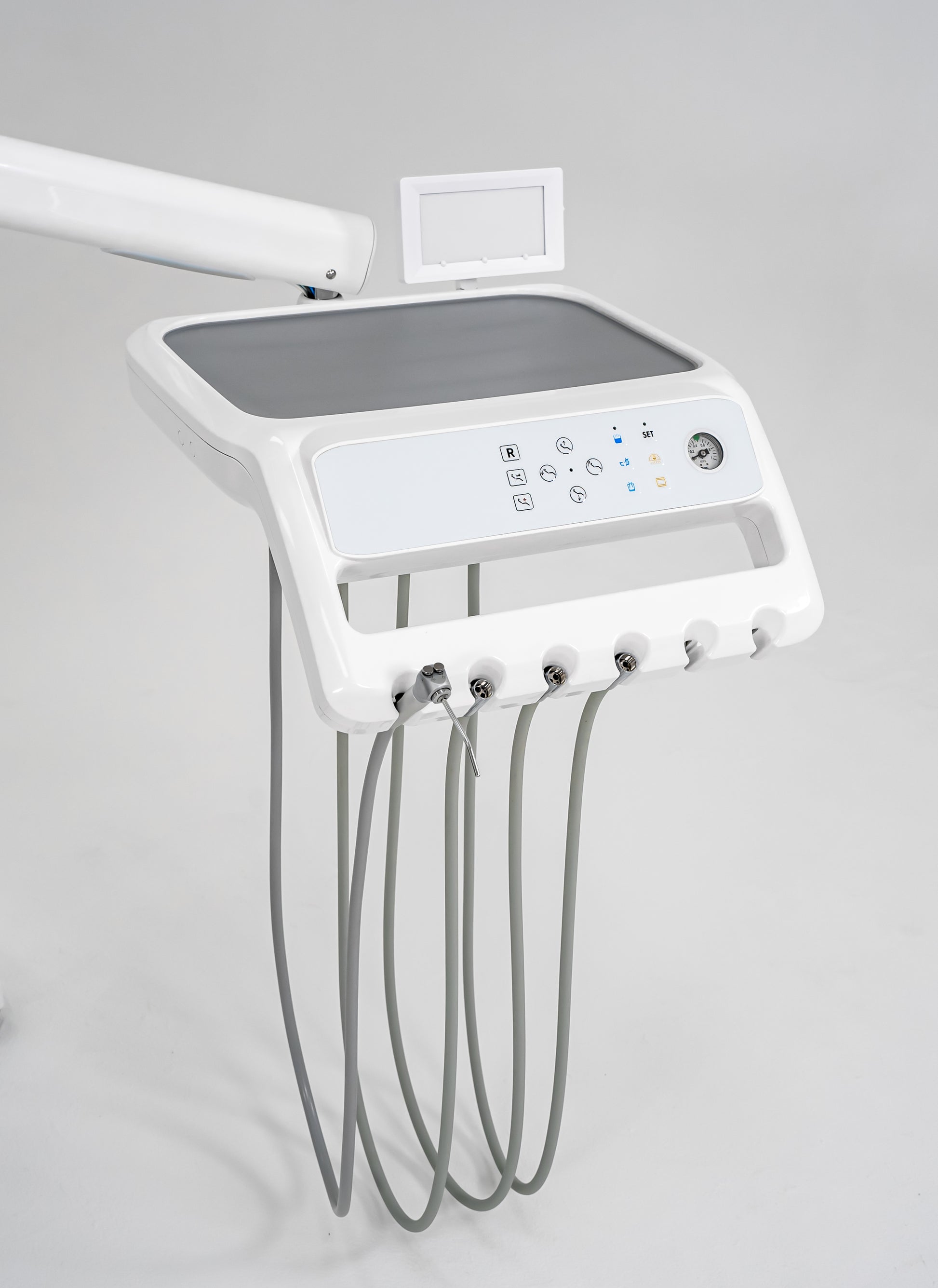 1 seringă multifuncțională cu 3 funcții (apă-aer, apă, aer)+ 3 furtune Midwest( 4 gauri)+ 1 post optional lampa foto sau detartraj cu ultrasunet.